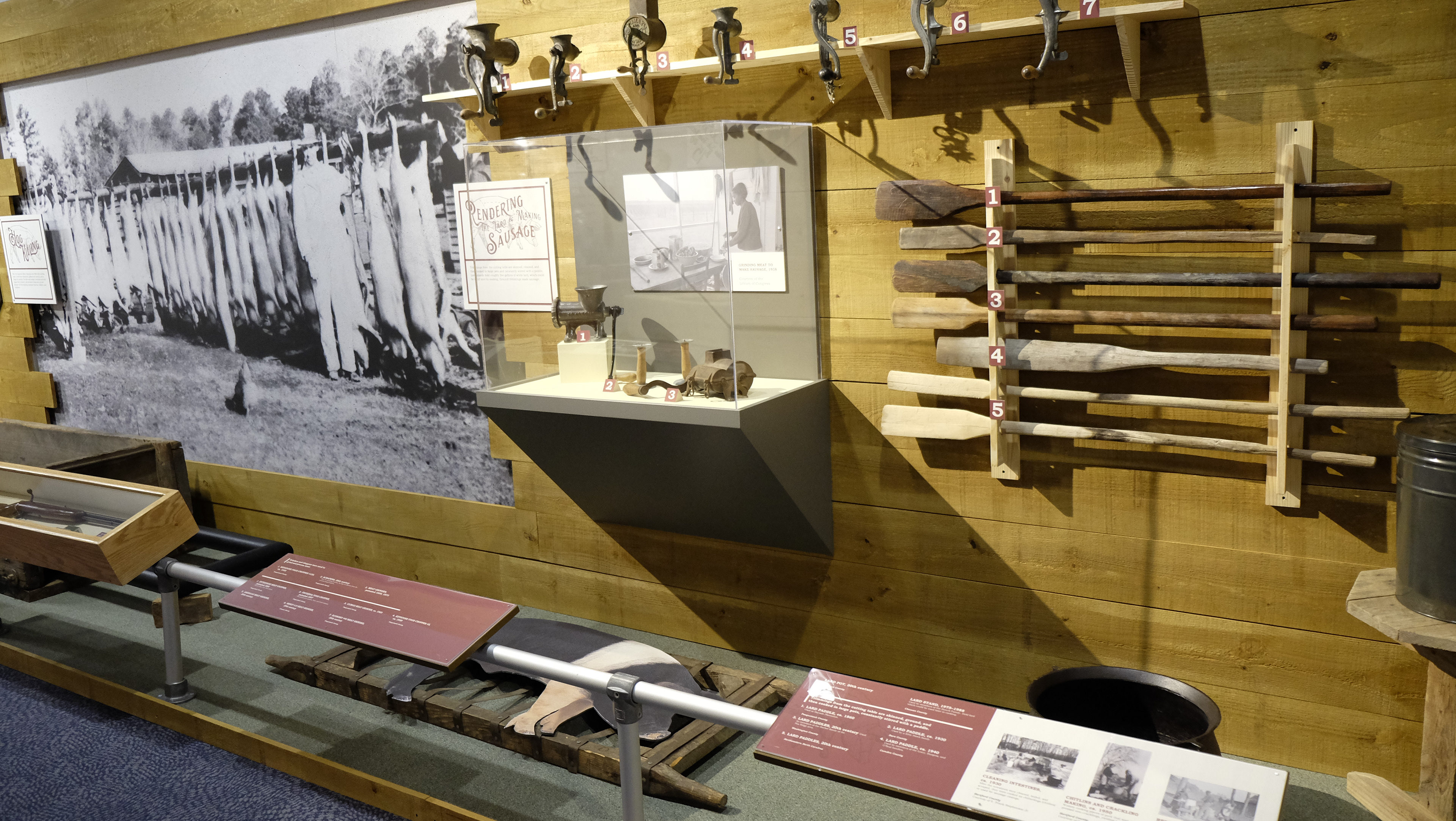Artifacts on display in the exhibit will include hog catchers, bills of sales, account books, plantation records, hog scrapers, cookbooks, hog scalding vat, butcher knives, a crackling press, lard paddles, a butcher block and prize-winning State Fair banners.